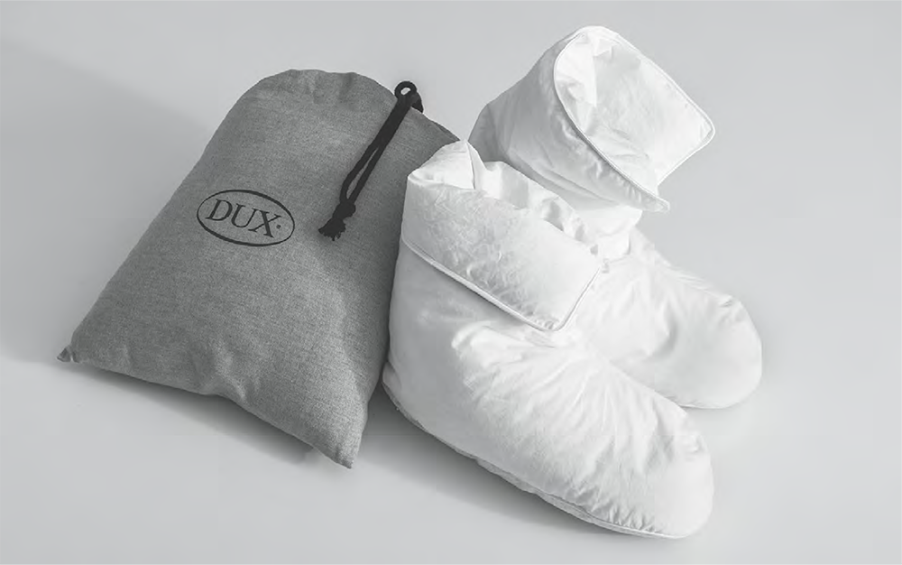 Luxuriously warm DUX down boots keep your feet cosy everywhere.